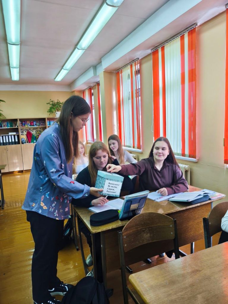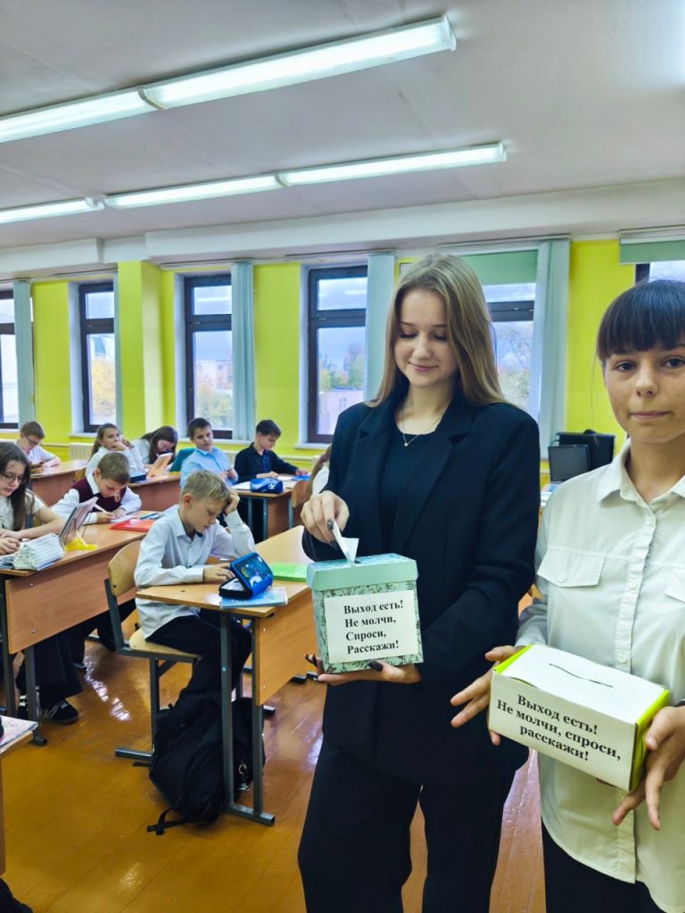 10 октября, во Всемирный день психического здоровья, учащиеся педагогических групп провели акцию «Выход есть! Не молчи. Спроси. Расскажи!» ведь проговоренная проблема на 50% теряет свою актуальность. Реализуя проект «Равный обучает равного» старшеклассники показали сверстникам и младшим ребятам, что в любой сложной жизненной ситуации выход есть всегда!